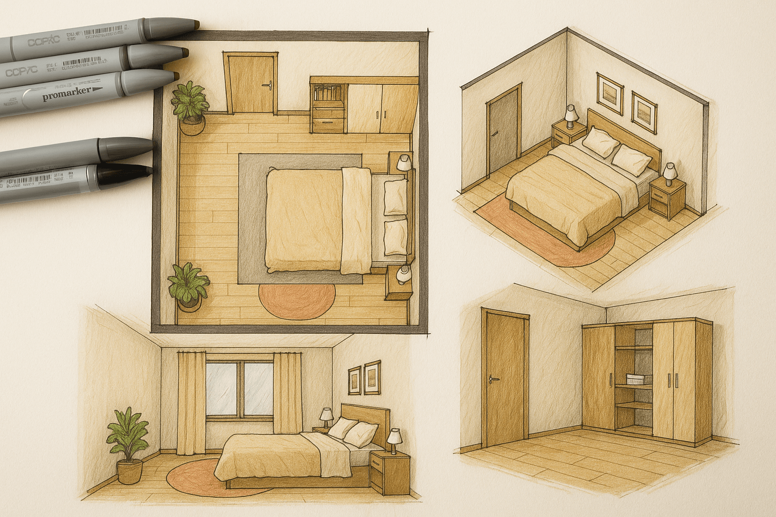À partir du plan précis de votre intérieur, je prépare une ou deux premières idées d’aménagement. Ce sont des croquis simples, faciles à lire, qui vous permettent de vous projeter rapidement : comment mieux organiser l’espace, faciliter la circulation, placer le mobilier, et déjà imaginer le potentiel de chaque pièce.