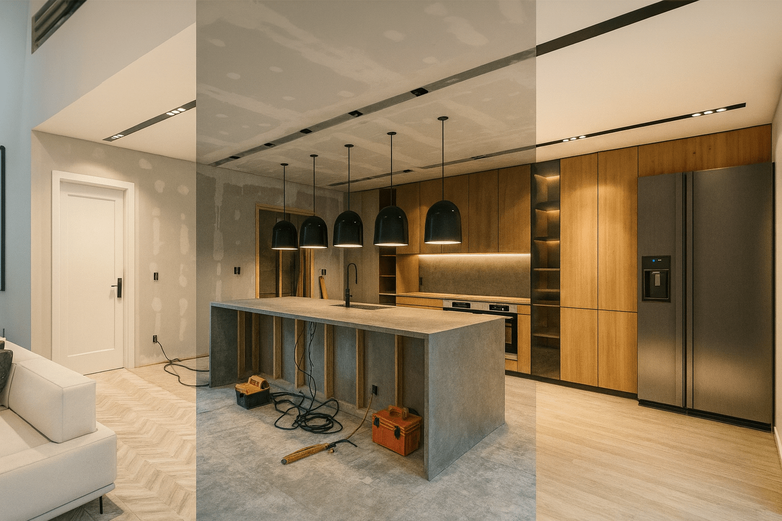 Offrez-vous l’excellence avec notre Pack Premium et la partie réalisations des travaux, pensés pour transformer vos espaces du premier croquis à la touche finale. Dans cette phase, nous passons à l’action avec nos travaux de plâtrerie et peinture : création ou modification d’espaces, finitions impeccables, peintures et revêtements muraux haut de gamme.